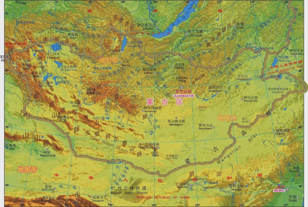 蒙古国北有肯特山脉(狼居胥山),最高海拔2799米,西有阿尔泰山,最高海拔4374米,西南有戈壁阿尔泰山脉,最高海拔3738米,中间有杭爱山脉,最高海拔3905米。有高山必然有大河,色楞格河流入贝加尔湖最终注入北冰洋,克鲁伦河是黑龙江上游,最终注入太平洋。
