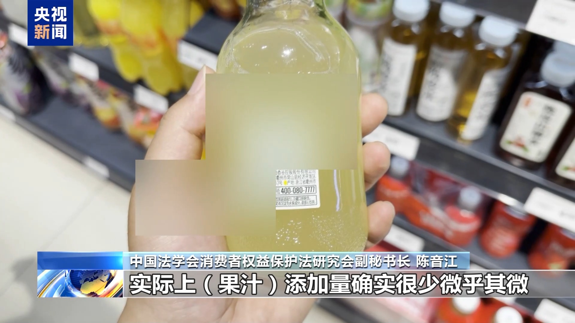 中国法学会消费者权益保护法研究会副秘书长 陈音江:现行的法规对相关显著性或者明显提示,缺乏硬性的量化标准。像一些果汁产品将“NFC”(非浓缩还原果汁)注册为商标,实际上果汁添加量确实很少,微乎其微,却以醒目的方式来标注“NFC”,这样的行为明显对消费者造成了实际的误导。